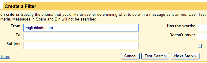 4. In the 'From:' field enter 'englishlads.com', then click on 'Next Step »'