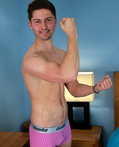 John is a keen sportsman, when not at the gym he is playing football or playing tennis, it seems like there is no sport he is not good at! When it comes to showing off on camera he is soon down to his boxers and he enjoys showing off that lean and muscled body and like many a fit athlete when their clothes come off their cocks rise up! John has a nice uncut cock, slightly leans to one side and he gets real hard and is not afraid to grab it and wank it. A lush body almost hair free and even his hole is only just a little hairy! After all his teasing and working his cock he empties his balls with an impressive loads of squirts!