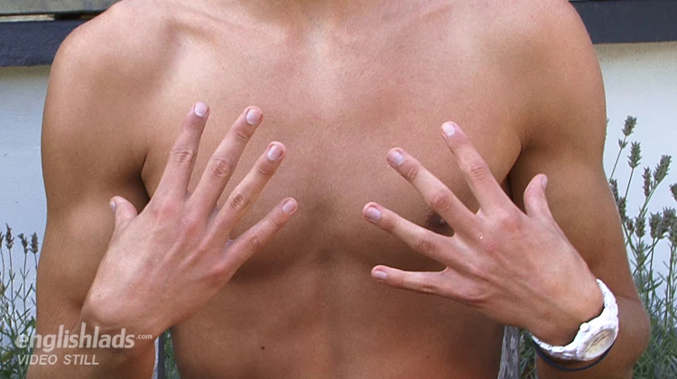 Perry is a Personal Trainer, tall, lean and nicely defined this young man is very relaxed and strips down to his boxers very casually while enjoying a rarely warm autumn day! Not just tall Perry is all long and when soft his uncut cock hangs down a good 5 inches, definitely a good shower and a little playing it becomes and even more impressive size reaching about 8 inches in all. You can watch Perry go from soft to hard without touching his cock, he swings it from side to side and it gently goes up til full erect! He is very happy to show off his body and isn’t shy about showing off his hole which is just lightly hairy. He plays around with his cock which stays rock hard right the way through his shoot til he pumps it hard and fast and gushes cum on his abs! A happy lad now unloaded.